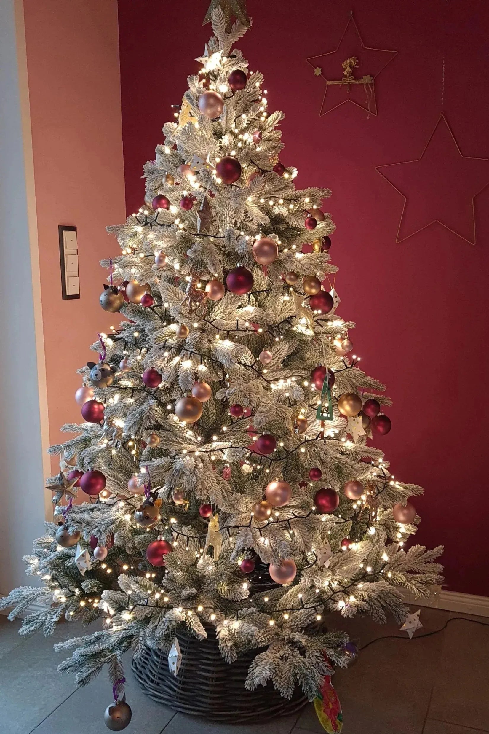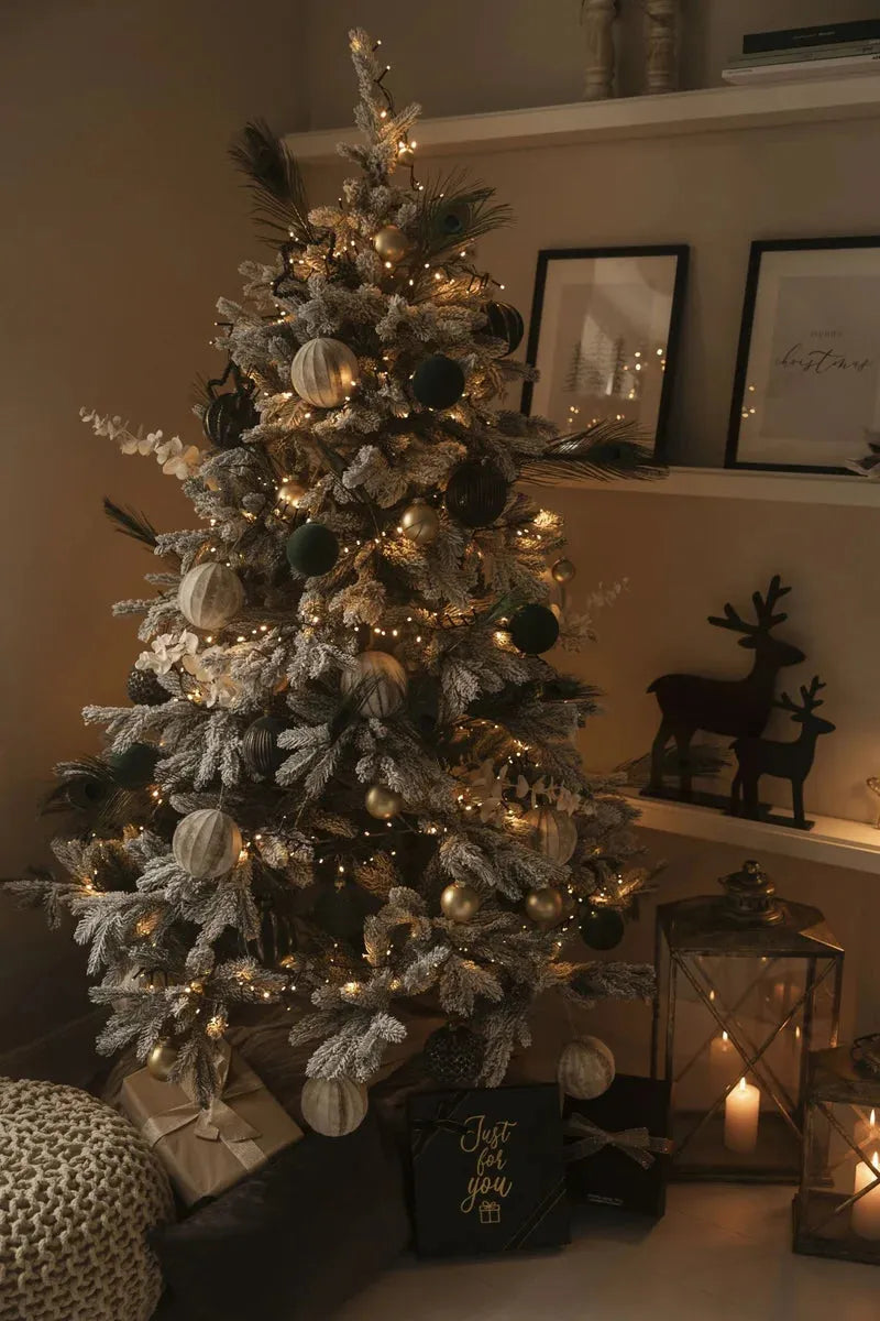 Dank der bereits vorhandenen Schneebeschichtung bietet Elsa eine wunderschöne Grundlage für jede Art von Weihnachtsdekoration. Der schneeweiße Kontrast zu den grünen Zweigen bringt Ornamente, Kugeln und Lichter besonders gut zur Geltung. Ob du dich für klassische rote und goldene Töne oder moderne, minimalistische Dekorationen entscheidest, Elsa bietet den perfekten Hintergrund. Die robusten, naturgetreuen Äste halten auch schwerere Weihnachtskugeln problemlos, sodass du deiner Kreativität freien Lauf lassen kannst.